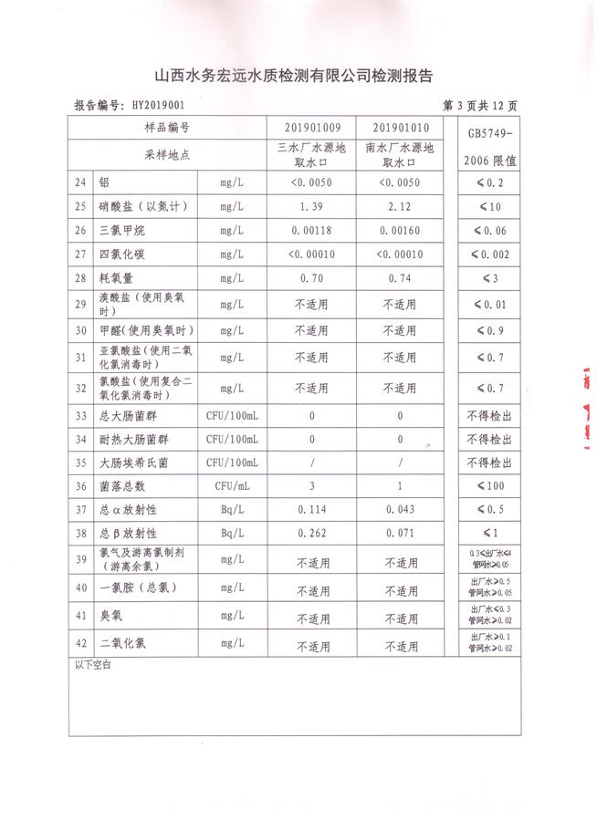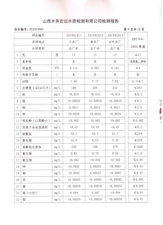 忻州城區(qū)公共供水水源水、出廠水、管網水、管網末梢水2019年1月份水質信息公示