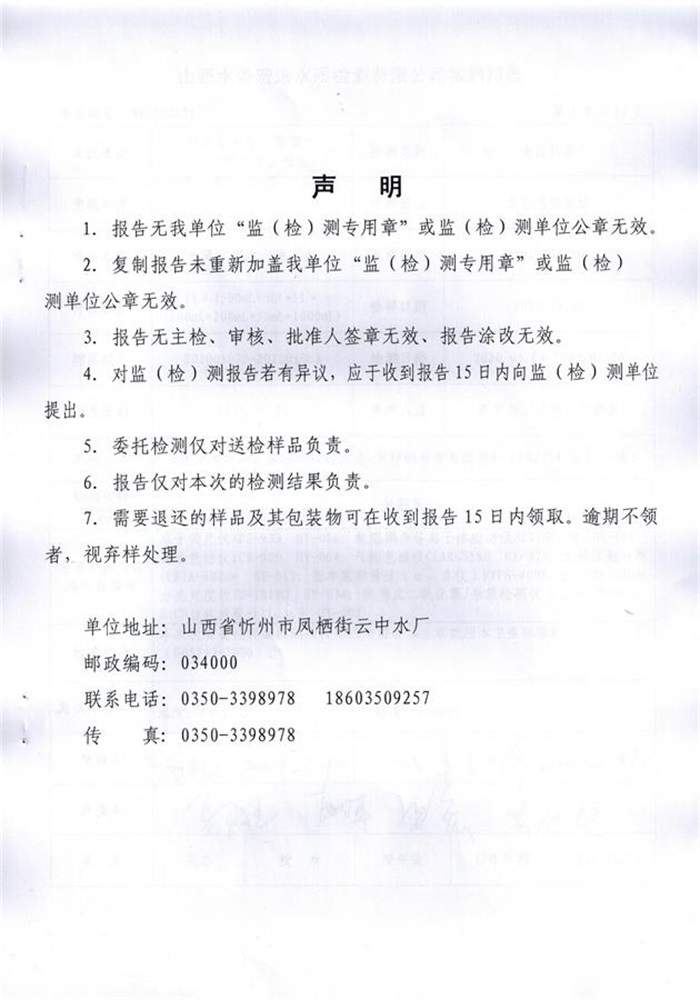 忻州城區(qū)公共供水水源水、出廠水、管網(wǎng)水、管網(wǎng)末梢水2020年5月份水質信息公示