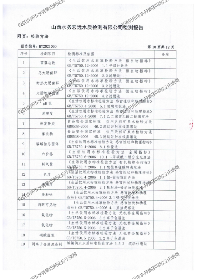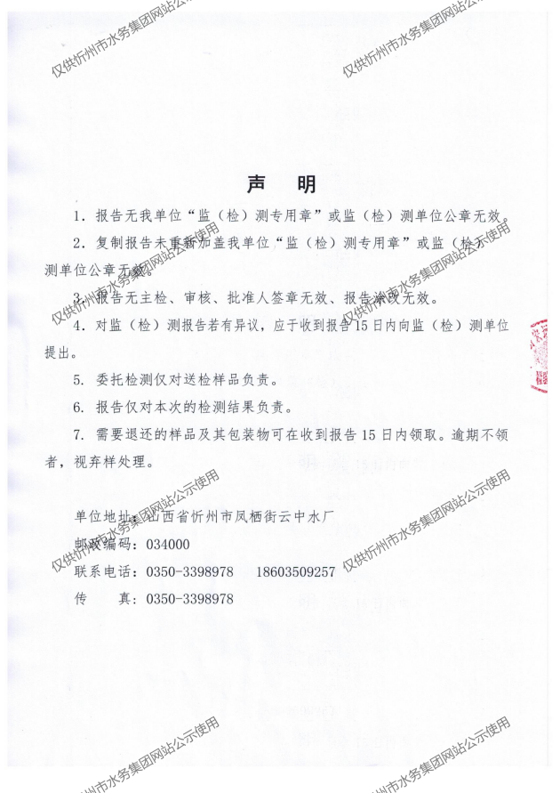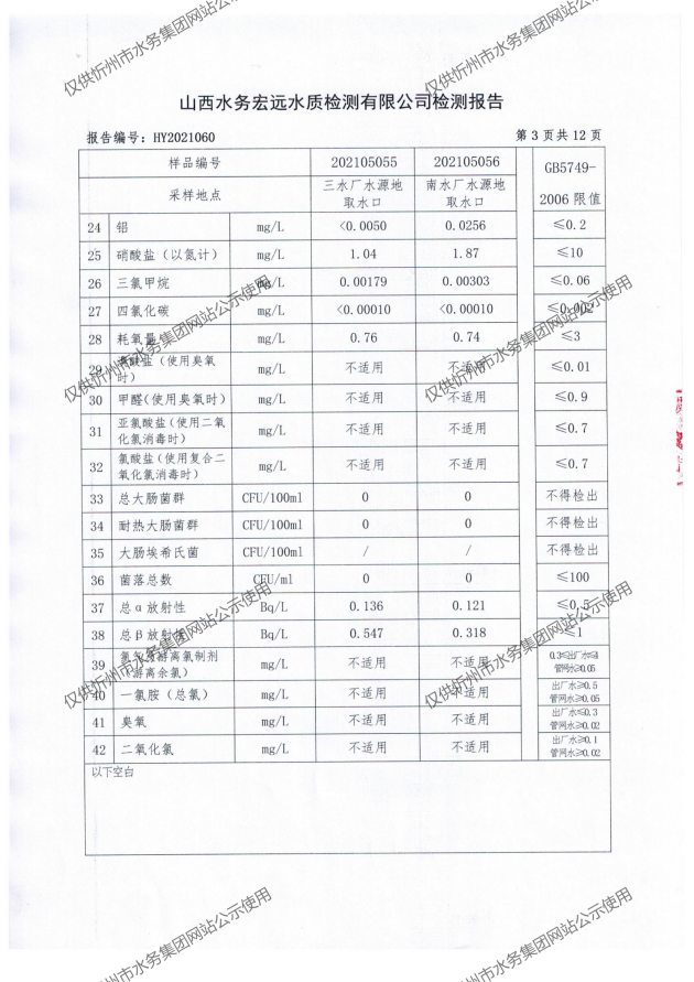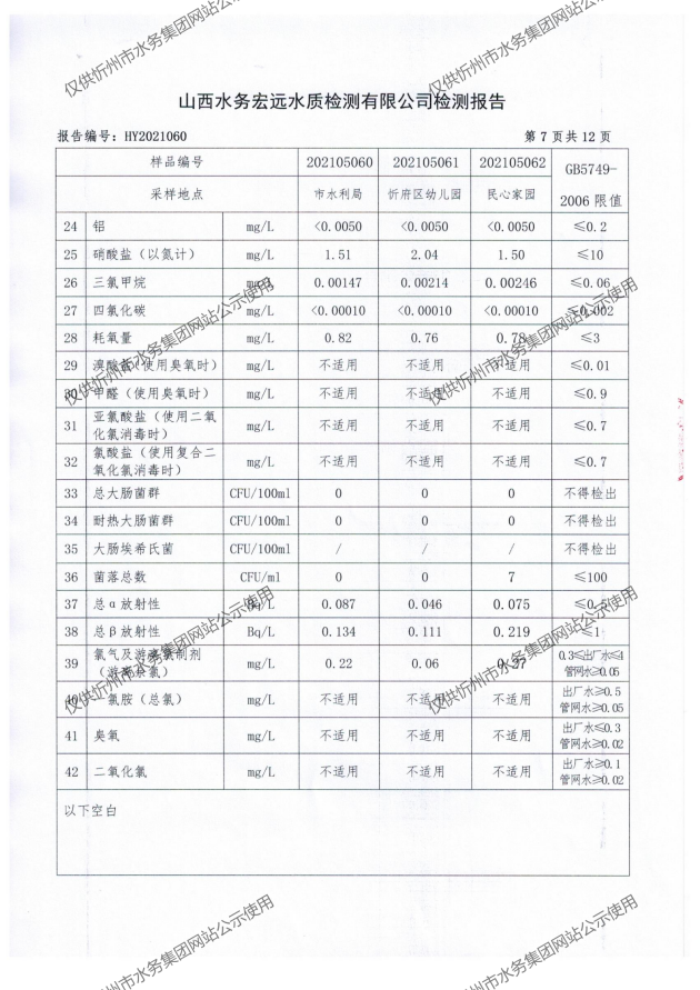 忻州城區(qū)公共供水水源水、出廠水、管網(wǎng)水、管網(wǎng)末梢水2021年5月份水質(zhì)信息公示