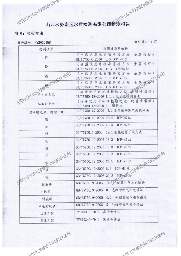2022年忻州城區(qū)公共供水南水廠、三水廠、云中水廠出廠水106項(xiàng)水質(zhì)全分析