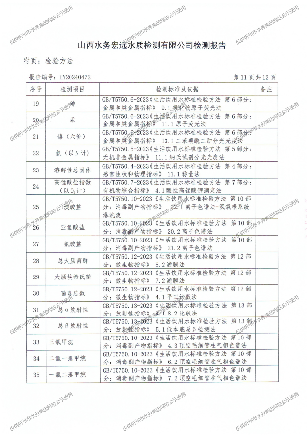 忻州城區(qū)公共供水水源水、出廠水、管網(wǎng)水、管網(wǎng)末梢水2024年8月份水質(zhì)信息公示